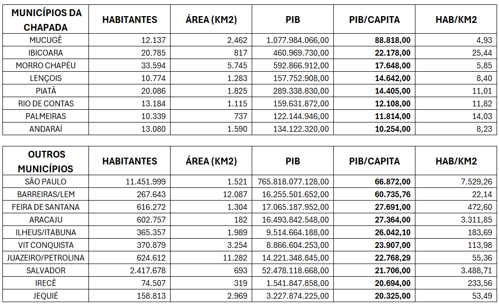 Esse dinamismo econômico coloca Mucugê em destaque no PIB per capita, superando inclusive capitais como Salvador e São Paulo, e reforça a vocação estratégica da região – não somente em seu passado histórico, mas também no presente e no futuro que se desenha no mapa do desenvolvimento imobiliário.