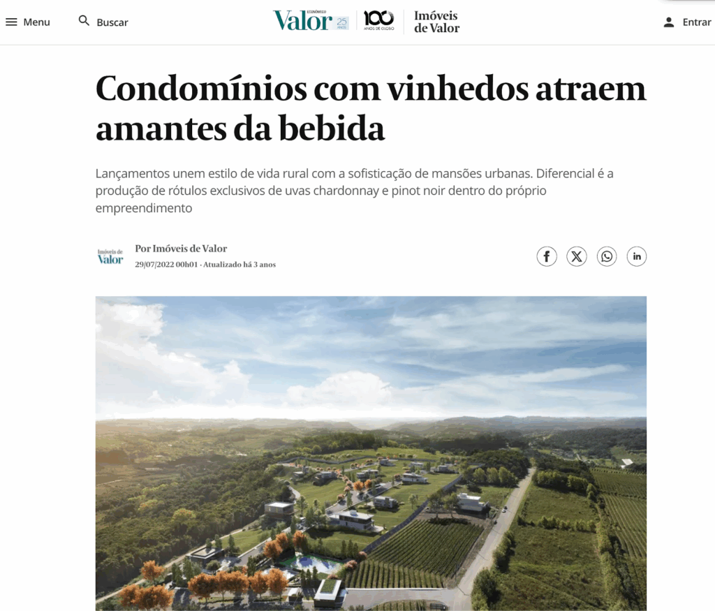 Nos Estados Unidos, a Califórnia é o epicentro desse movimento, onde já existem condomínios vinícolas que oferecem frações de residências de alto padrão com direito a participação na produção. A lógica é semelhante: investir em um ativo imobiliário valorizado, localizado em uma região turística dentro da cultura do vinho.